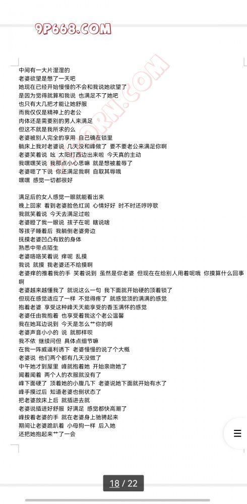 推上追了一位叫薯片的大神,追了2年多了,大神用自述的方式讲述了自己淫妻的心路历程。内心部分细腻且丰满,让人有强烈的代入感。经UP主同意,贴于91共赏。