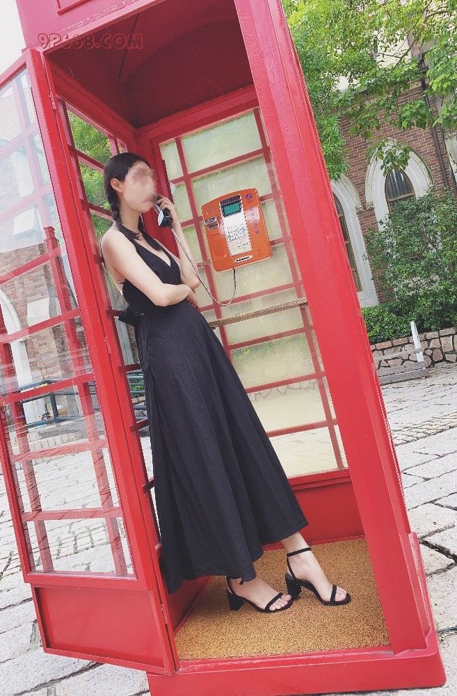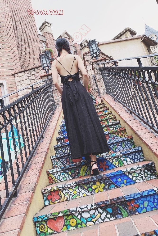 扎起双马尾,配上黑色吊带长裙